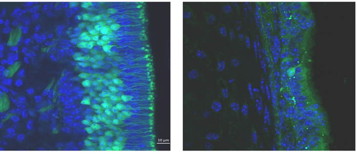 Although, we have known for a long time that appetite and olfactory perception are tightly interconnected, the exact mechanisms underlining the modulation of smell with the nutritional state remain poorly understood nowadays. The goal of our research is to identify how nutrients and hormones known to be involved in energy homeostasis can regulate the olfactory output at the olfactory bulb level. Using a combination of anatomical and electrophysiological tools, we study how mitral cell activity is regulated by key molecules such as insulin, glucose or the incretin hormone glucagon-like peptide 1 (GLP-1). I recently focused my research on GLP-1, a key regulator of energy metabolism and food intake, which has become an important therapeutic approach for treating type 2 diabetes. I developed an optogenetic approach using transgenic animal models to specifically activate a newly discovered population of GLP-1-producing interneurons in the olfactory bulb and revealed their modulatory action on mitral cells. Mitral cells are the main relay of the olfactory information between the olfactory sensory neurons in the nose and the higher brain areas responsible for processing the olfactory information.